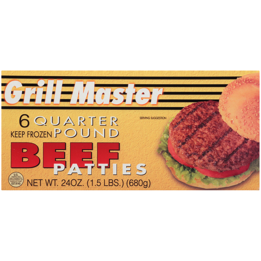 Grill Master 1/4 LB Beef Patties 6 Each 24 Oz "Per One Patty: 280 Calories, 22g Total Fat, 45mg Cholesterol, 590mg Sodium, 6g Total Carbohydrate, 14g Protein" ![]() |