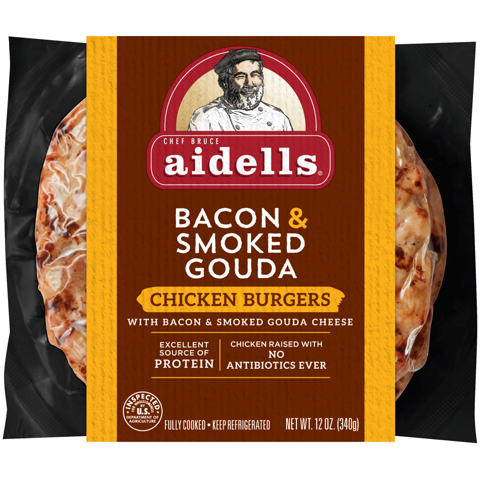 Bacon & Smoked Gouda Chicken Burgers 12 Oz "Per 1 Burger: 200 Calories, 15g Total Fat, 710mg Sodium, 15g Protein" ![]() |