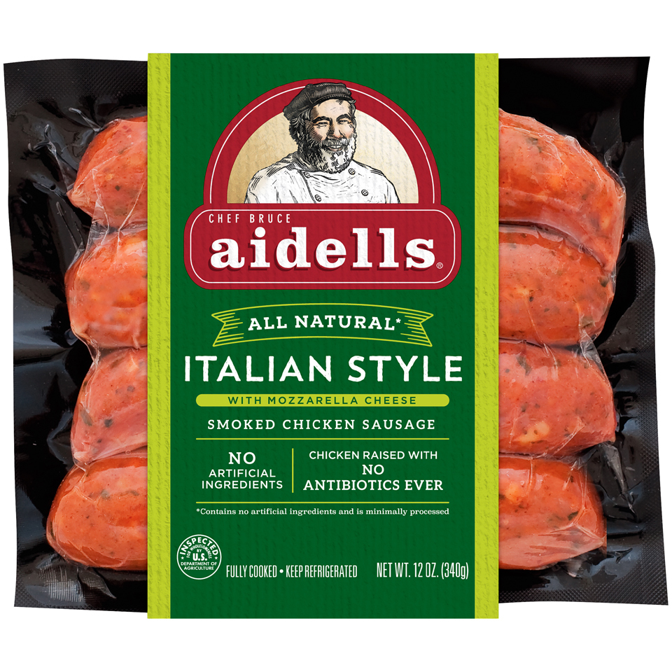 Italian Style Smoked Mozz Chicken Sausage 12 Oz "Per One Link: 160 Calories, 11g Total Fat, 570mg Sodium, 14g Protein" ![]() |
