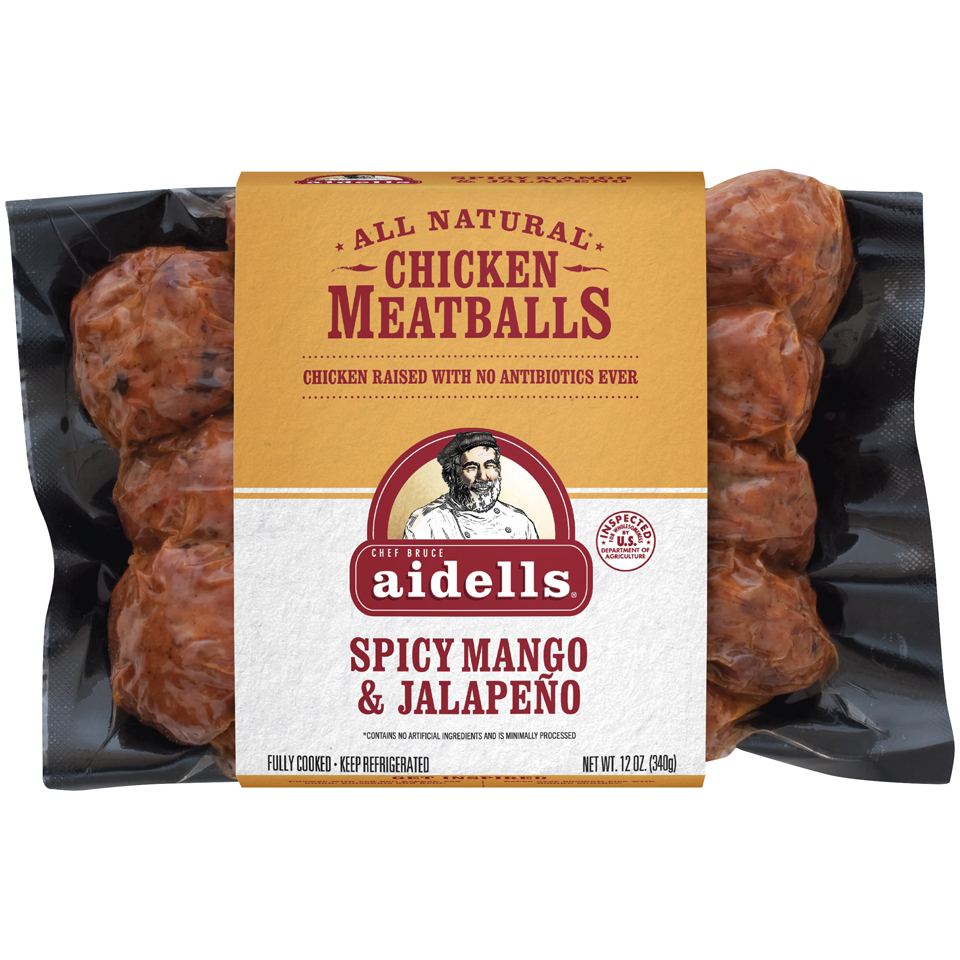 Spicy Mango & Jalapeno Chicken Meatballs 12 Oz "Per 4 Meatballs: 170 Calories, 11g Total Fat, 620mg Sodium, 12g Protein" ![]() |