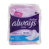 Always Dailies, Sheer/No Feel, 54 Regular Liners ![]() |