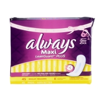 Always Maxi Leak Guard Plus - Odor Lock, 45 Regular Scented Pads ![]() |
