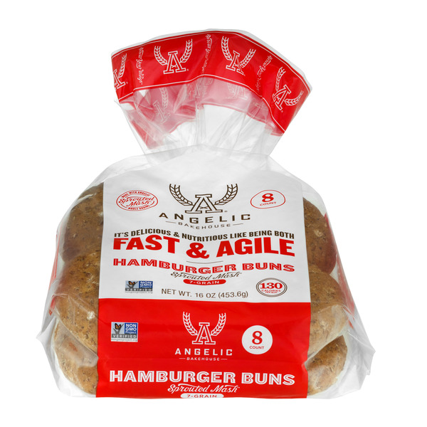 Angelic Bakehouse Sprouted Mash 7 Grain Hamburger Buns 8 Each 16 Oz "Non Gmo Project Verified. 33g Whole Grains, 3g Fiber, 19g Net Carbs, 6g Protein. 130 Calories Per Bun." ![]() |