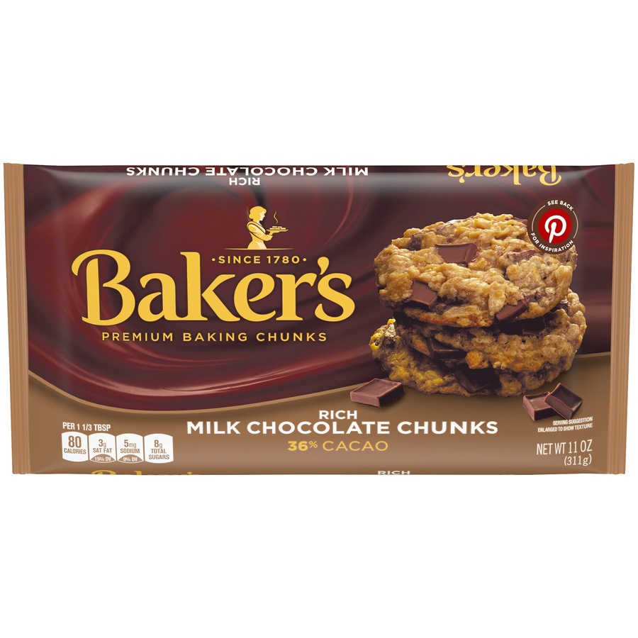 Premium Milk Chocolate Chunks 11 Oz "Per 1 & 1/3 TBSP: 80 Calories, 3g Sat Fat, 5mg Sodium, 8g Total Sugars" ![]() |