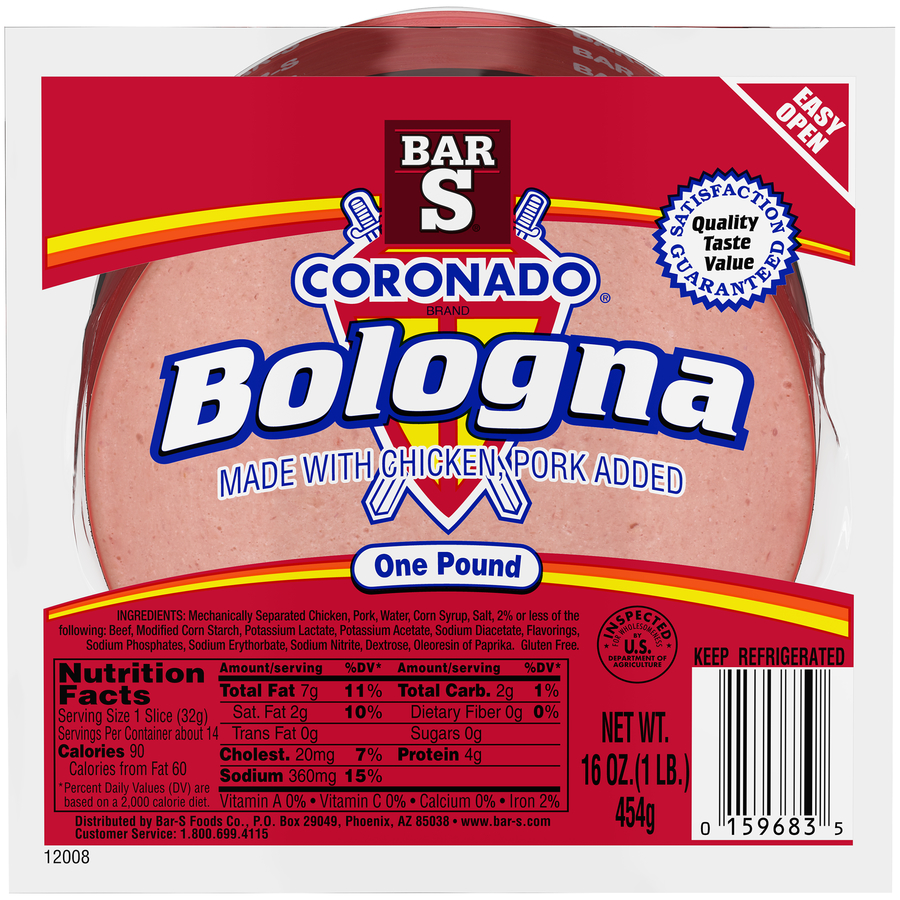 Coronado Brand Bologna 16 Oz "Per One Slice: 90 Calories, 7g Total Fat, 360mg Sodium & 4g Protein" ![]() |