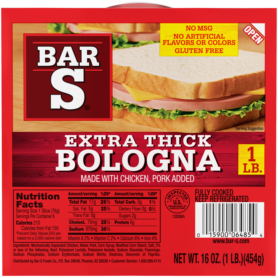 Extra Thick Bologna 16 Oz "Per One Slice: 210 Calories, 17g Total Fat, 870mg Sodium & 6g Protein" ![]() |