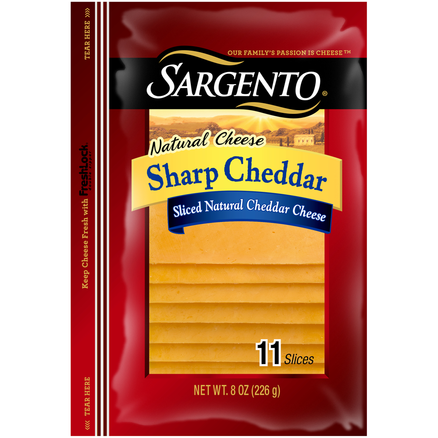 Sargento Sharp Cheddar 8 Oz "Per One Slice: 80 Calories, 7g Total Fat, 130mg Sodium & 5g Protein" ![]() |