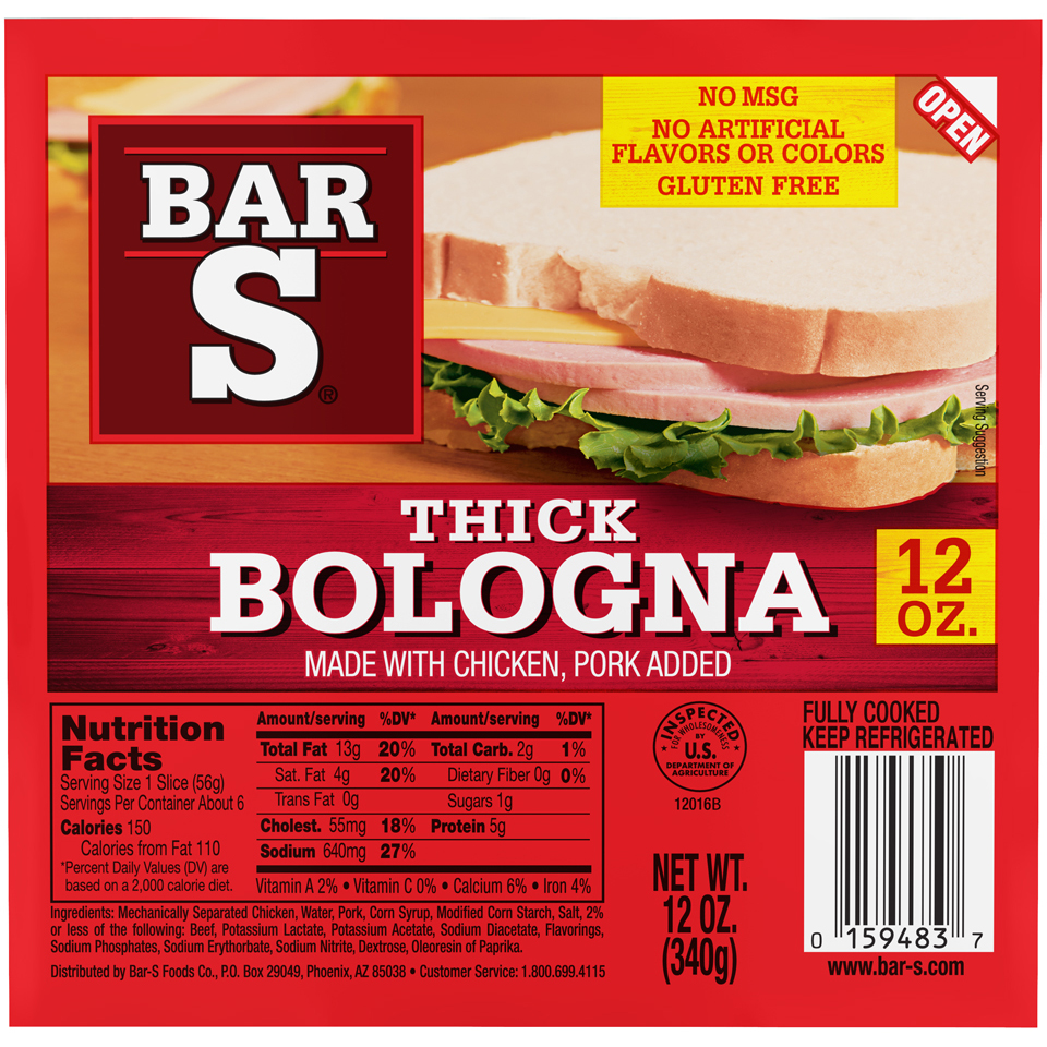 Thick Bologna 12 Oz "Per One Slice: 150 Calories, 13g Total Fat, 640mg Sodium & 5g Protein" ![]() |