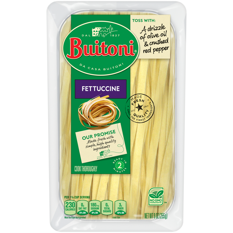 Buitoni Fresh Fettuccine 9 Oz "Per 1 & 1/4 Cup Serving: 230 Calories, 1.5g Total Fat, 180mg Sodium, 0g Total Sugars, 9g Protein" ![]() |
