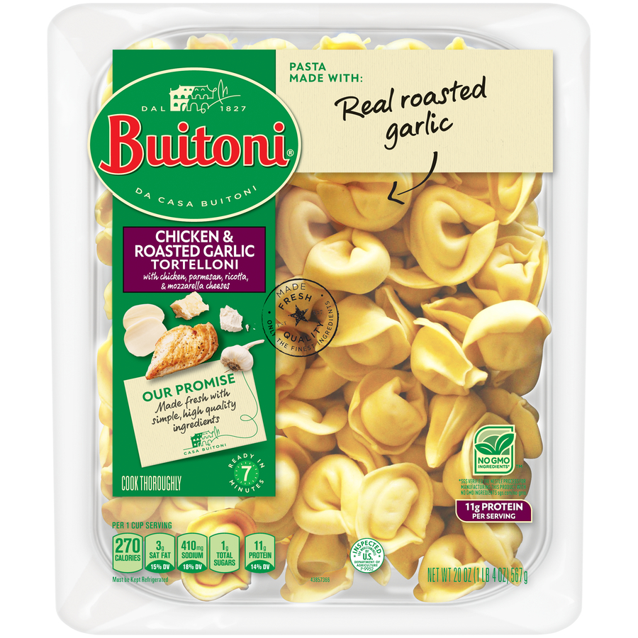 Chicken & Roasted Garlic Tortelloni 20 Oz "Per 1 Cup Serving: 270 Calories, 8g Total Fat, 410mg Sodium, 1g Total Sugars, 11g Protein" ![]() |
