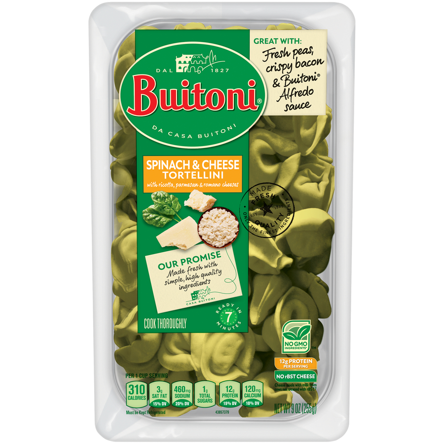 Fresh Spinach & Cheese Tortellini 9 Oz "Per 1 Cup Serving: 310 Calories, 8g Total Fat, 460mg Sodium, 1g Total Sugars, 12g Protein" ![]() |