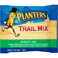 Planters Energy Trail Mix 1.5 Oz Almonds, Honey Roasted Peanuts And Sesame Sticks, Dark Chocolate Soy Nuts, Walnuts And Pecans." ![]() |