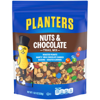 Planters Nuts And Chocolate Trail Mix 6 Oz Roasted Peanuts, M&M's Chocolate Candies, Raisins And Roasted Almonds. "Per 3 TBSP: 170 Calories, 2.5g Sat Fat, 40mg Sodium And 10g Total Sugars." ![]() |