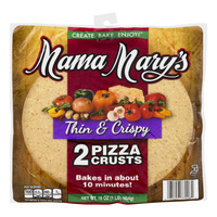 Mama Mary's Thin Crispy Pizza Crust Two Each 16 Oz "160 Calories, 0.5g Saturated Fat, 260mg Sodium, 1g Sugars Per Serving" ![]() |