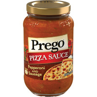 Prego Pizza Sauce Pepperoni Sausage 13.5 Oz "35 Calories, 0g Saturated Fat, 200mg Sodium, 4g Total Sugars Per 0.25 Cup Serving" ![]() |
