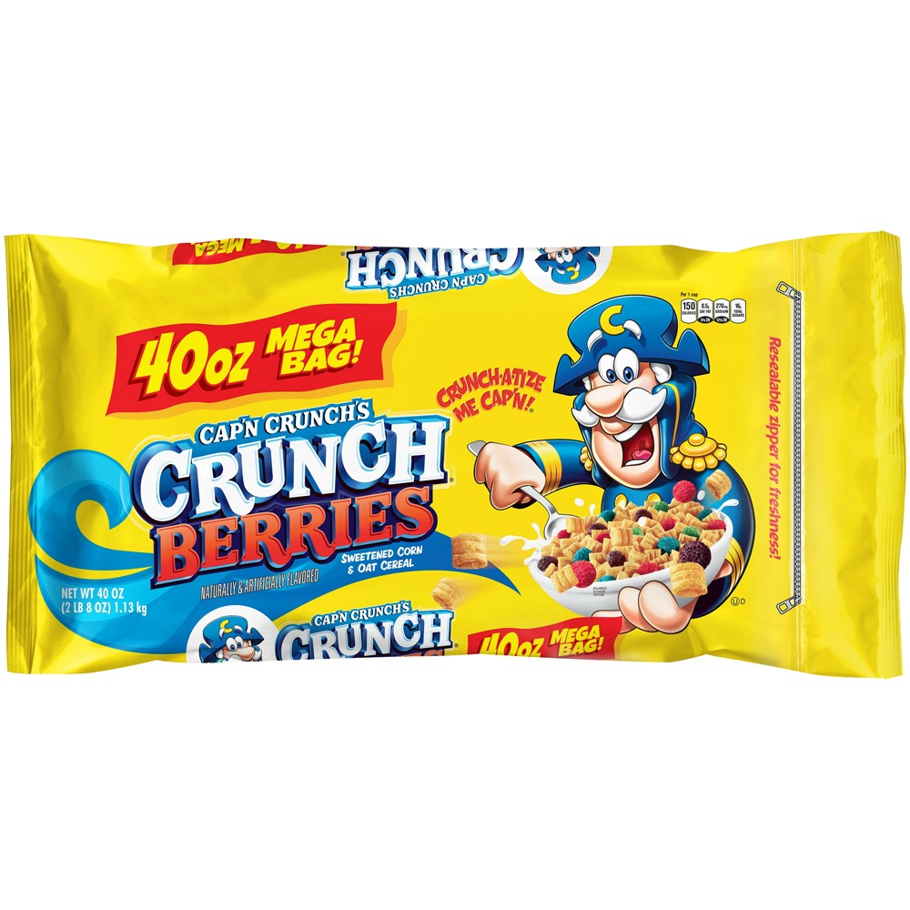 Capn Crunch Cereal Berries Mega Bag 40 Oz "Per One Cup W/Skim Milk: 200 Calories, 2g Total Fat, <5mg Cholesterol, 340mg Sodium, 7g Protein" ![]() |
