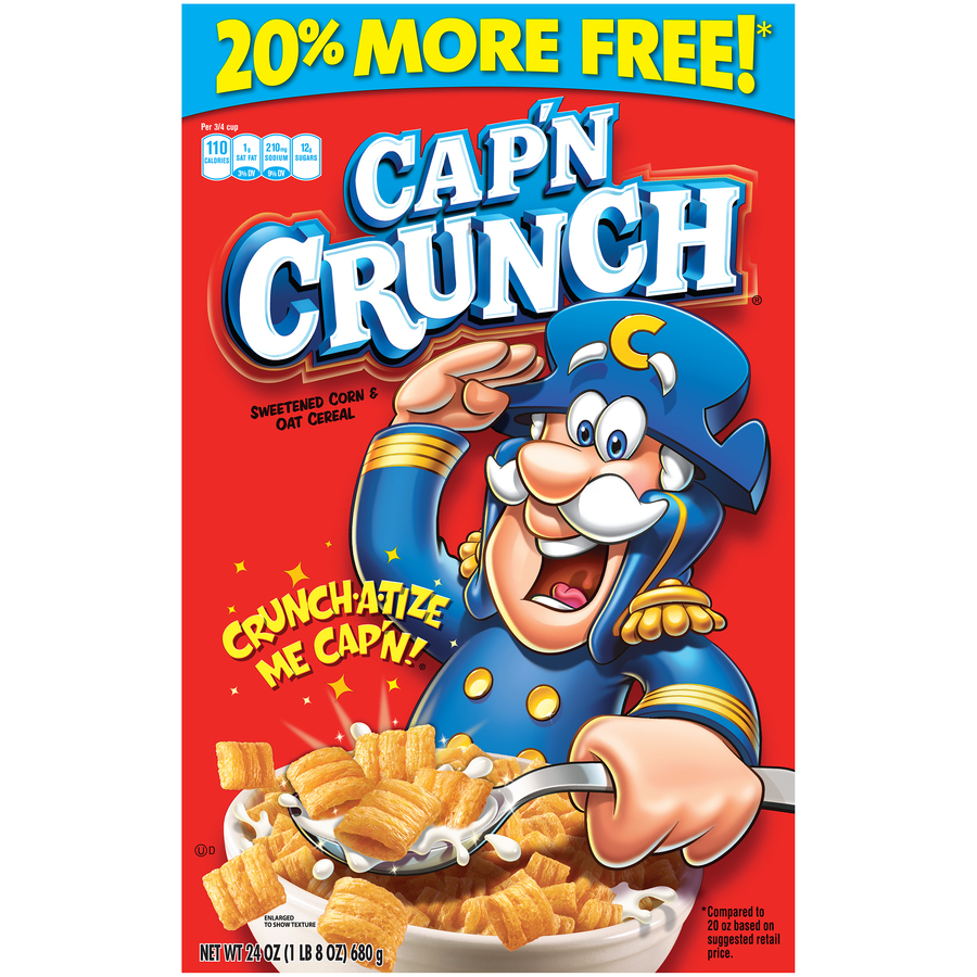 Capn Crunch Corn & Oat Cereal 10.1 Oz "Per Serving: 110 Calories, 1g Sat Fat, 200mg Sodium, 12g Sugars" ![]() |