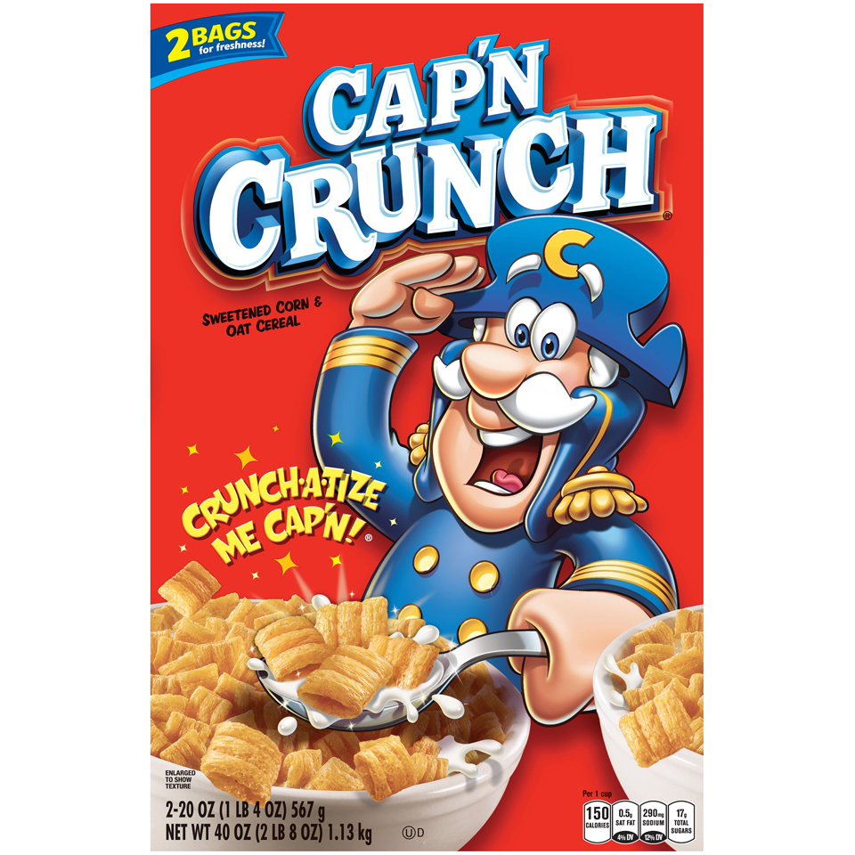 Capn Crunch Corn And Oat Cereal, 2 Bags 40 Oz "Per One Cup W/Skim Milk: 210 Calories, 2g Total Fat, <5mg Cholesterol, 350mg Sodium, 7g Protein" ![]() |