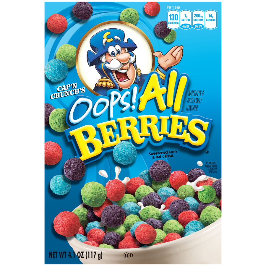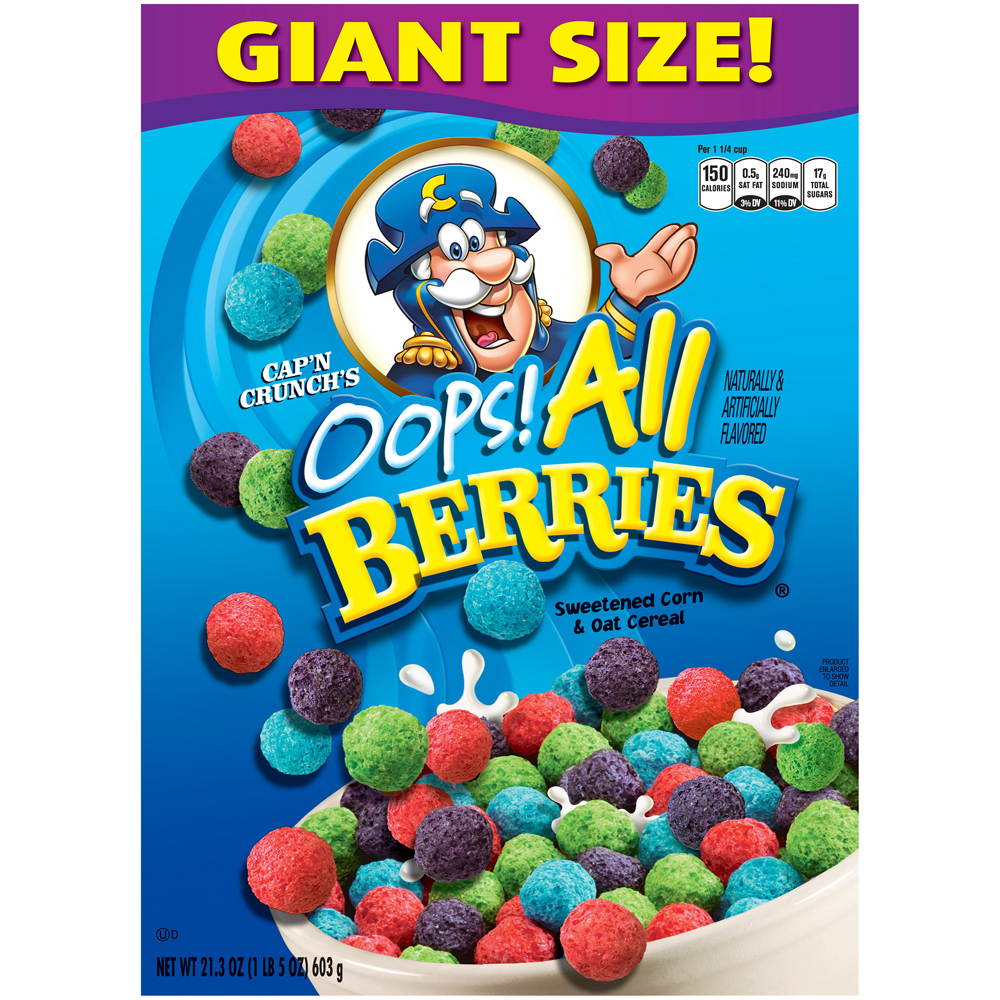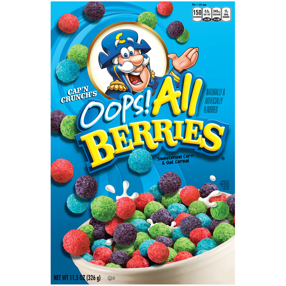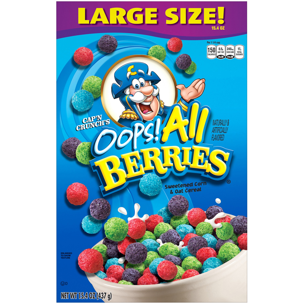 Capn Crunch Oops! All Berries 15.4 Oz "Per One & 1/4 Cup W/Skim Milk: 200 Calories, 1.5g Total Fat, <5mg Cholesterol, 310mg Sodium, 7g Protein" ![]() |