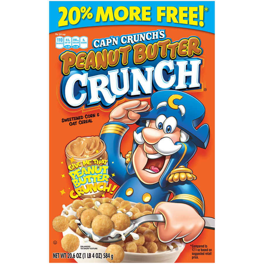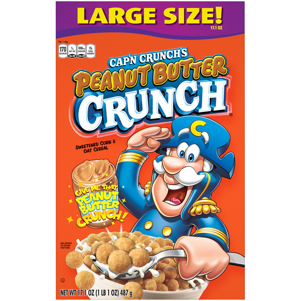 Capn Crunch Peanut Butter Crunch Cereal 12.5 Oz "Per One Cup W/Skim Milk: 220 Calories, 4g Total Fat, <5mg Cholesterol, 370mg Sodium, 8g Protein" ![]() |