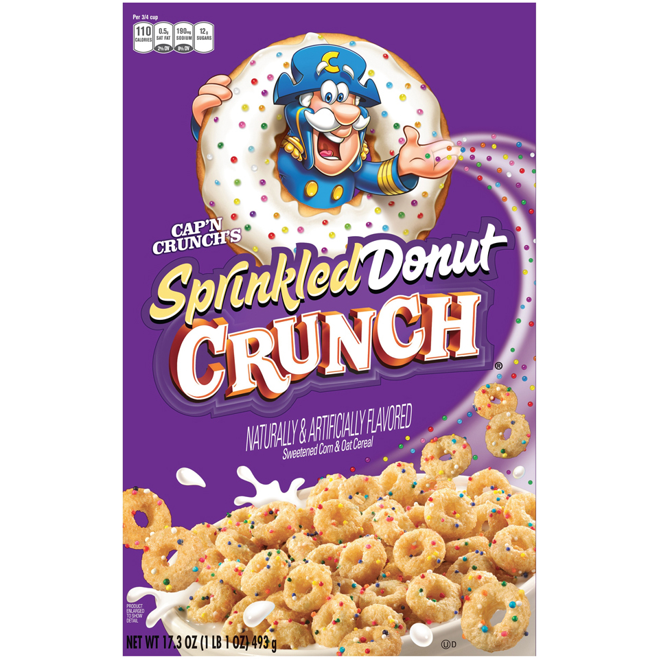 Capn Crunch Sprinkled Donut Crunch 17.3 Oz "Per One & 1/4 Cup W/Skim Milk: 200 Calories, 1.5g Total Fat, <5mg Cholesterol, 320mg Sodium, 7g Protein" ![]() |