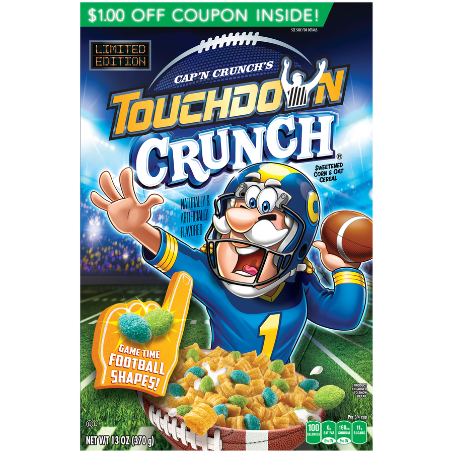 Capn Crunch Touchdown! 0.77Oz "Per One Pouch: 90 Calories, 1g Total Fat, 0mg Cholesterol, 160mg Sodium, 19g Total Carbohydrate, <1g Protein" ![]() |