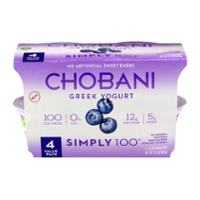 Chobani Yogurt Simply 100 - Blueberry Blended Value Pack Four 5.3 Oz Cups 21.2 Oz ![]() |
