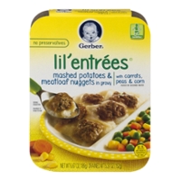 Lil' Entrees Mashed Potatoes & Meatloaf Nuggets In Gravy W/Carrots, Peas, Corn Toddler 6.6 Oz ![]() |