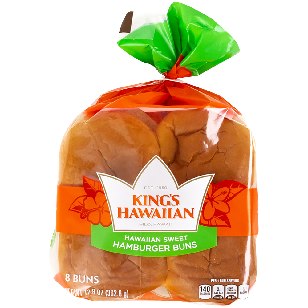 King's Hawaiian Sweet Hamburger Buns 8 Each 12.8 Oz "Per One Bun: 140 Calories, 3.5g Total Fat, 20mg Cholesterol, 125mg Sodium, 24g Total Carbohydrate, 4g Protein" ![]() |
