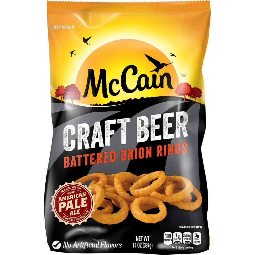 McCain Craft Pale Ale Beer Battered Onion Rings 14 Oz "Per Six Pieces: 190 Calories, 8g Total Fat, 0mg Cholesterol, 350mg Sodium, 26g Total Carbohydrate, 2g Protein" ![]() |