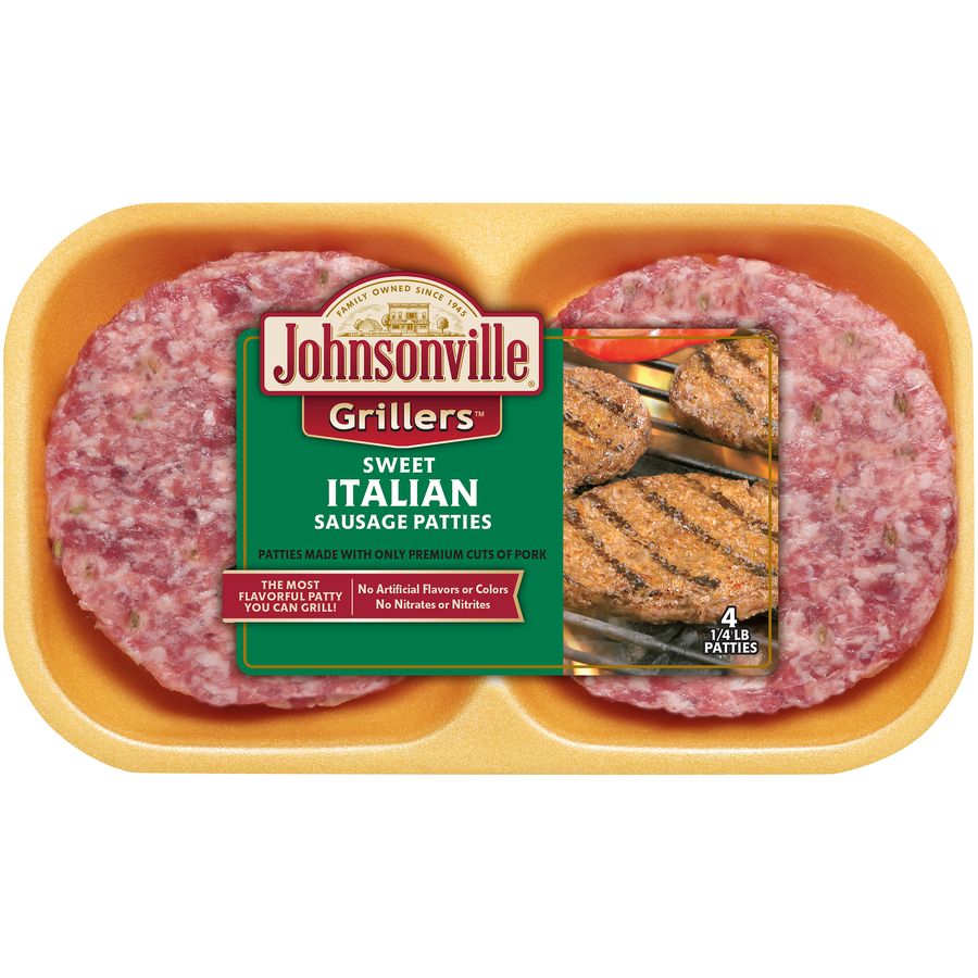 Sweet Italian Sausage Grillers 4 Each 1 LB "Per One Grilled Patty: 260 Calories, 22g Total Fat, 60mg Cholesterol, 590mg Sodium, 2g Total Carbohydrate, 12g Protein" ![]() |
