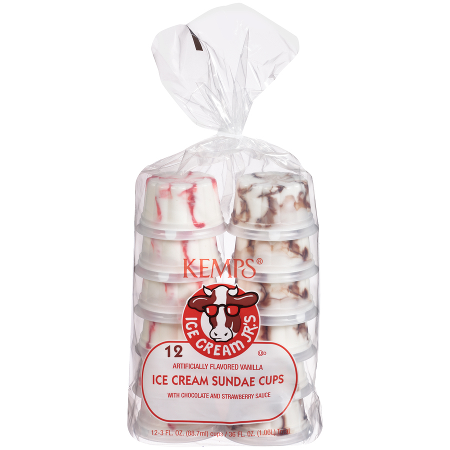 Vanilla, Chocolate & Strawberry Sundae Cups, Twelve 3 FL Oz Cups "Per 3 Oz: 110 Calories, 5g Total Fat, 20mg Cholesterol, 35mg Sodium, 16g Total Carb, 1g Protein" ![]() |