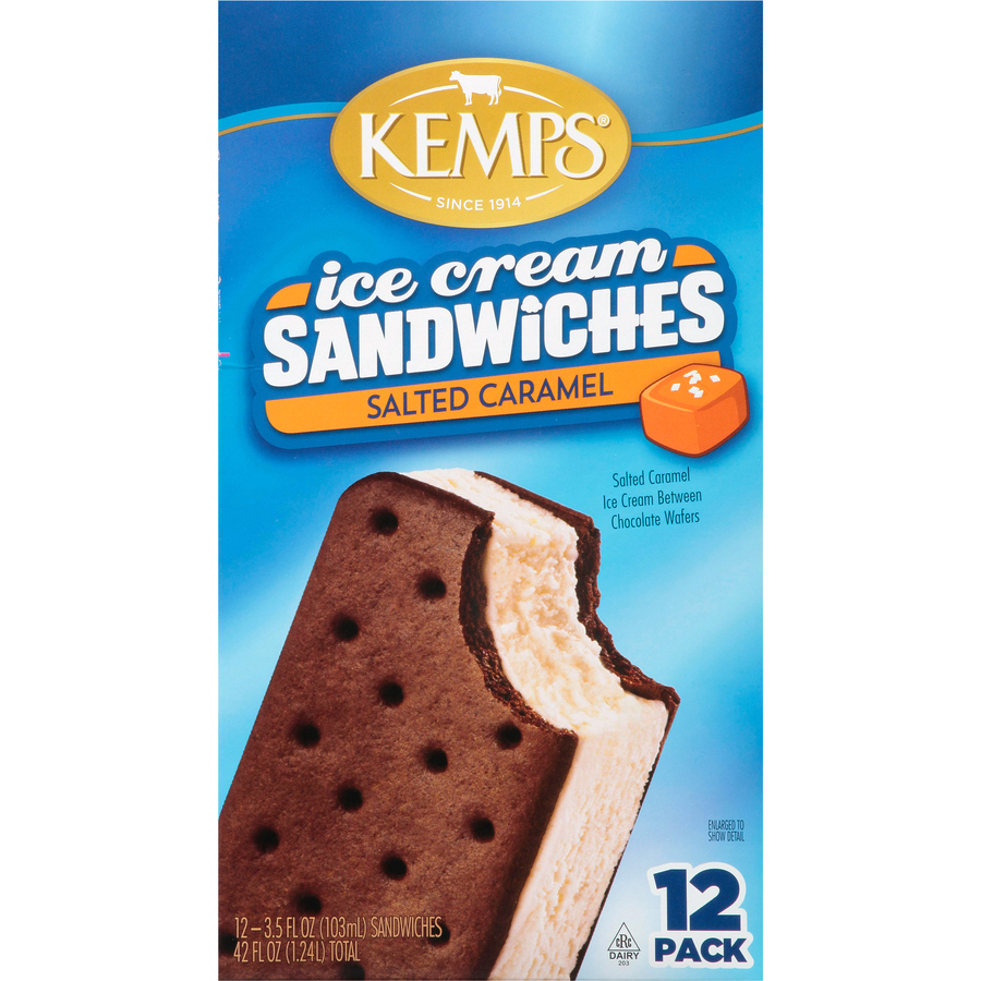 Kemps Salted Caramel Ice Cream Sandwiches 3.5 FL Oz "Per One Sandwich: 160 Calories, 5g Total Fat, 20mg Cholesterol, 170mg Sodium, 27g Total Carb, 2g Protein" ![]() |