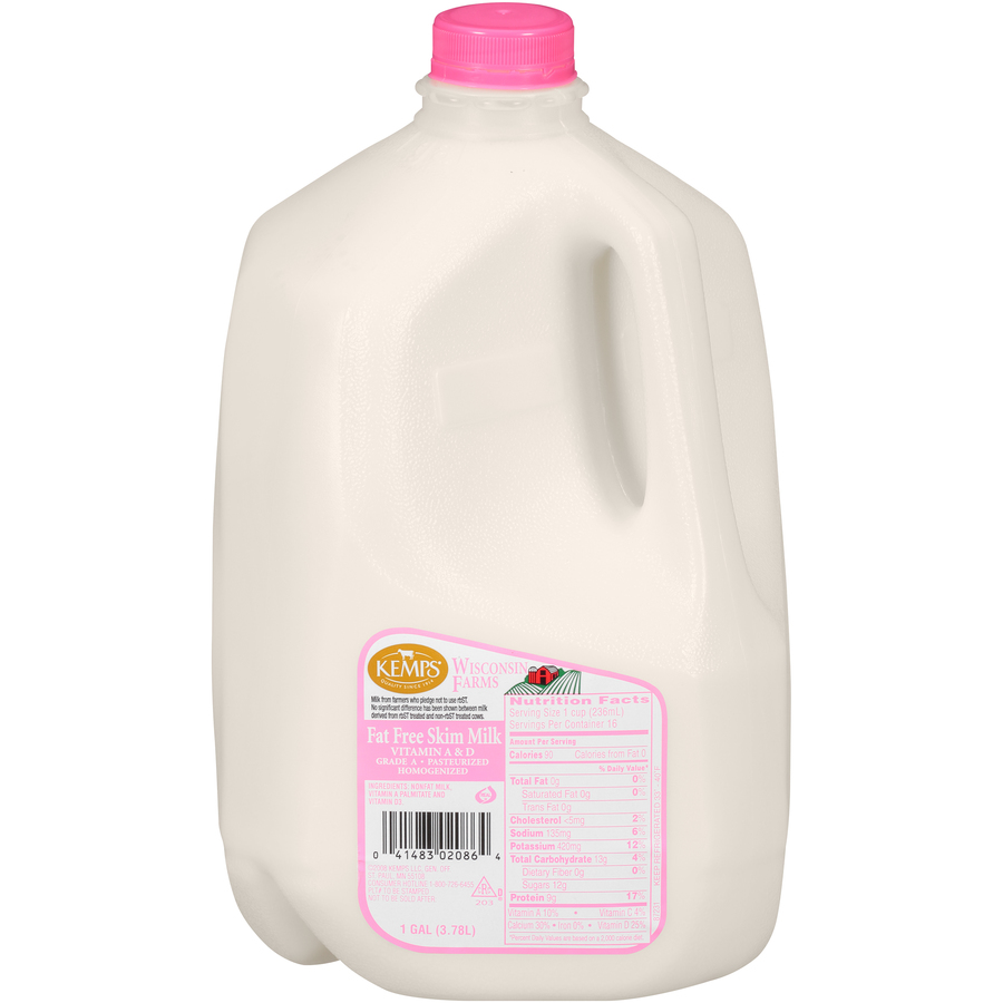 Fat Free Skim Milk Vitamin A And D, 1 Gallon "Per One Cup: 90 Calories, 0g Total Fat, <5mg Cholesterol, 135mg Sodium, 420mg Potassium, 13g Total Carbohydrate, 9g Protein" ![]() |