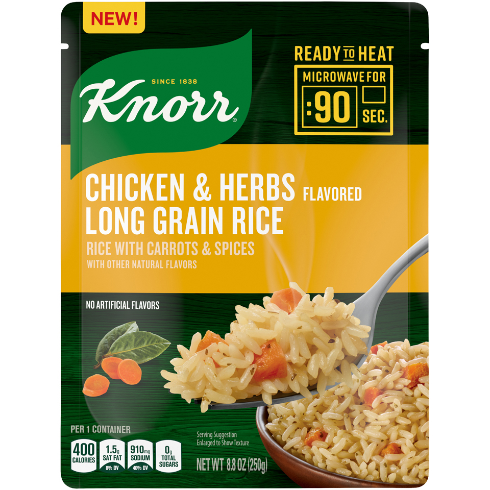 Chicken & Herbs Flavor Long Grain Rice 8.8 Oz "Container: 400 Calories, 6g Total Fat, 5mg Cholesterol, 910mg Sodium, 77g Total Carbohydrate, 7g Protein" ![]() |