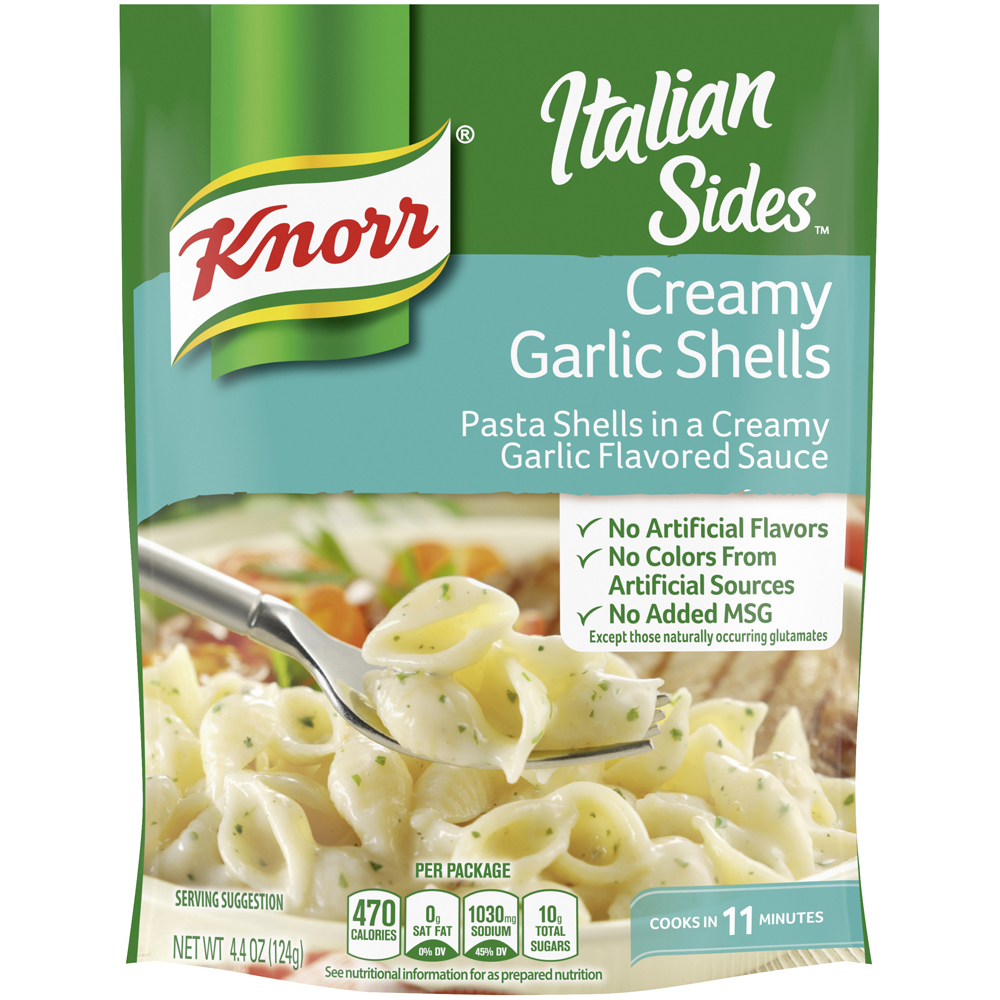 Italian Sides Creamy Garlic Shells 4.4 Oz "Package: 640 Calories, 16g Total Fat, 15mg Cholesterol, 1190mg Sodium, 103g Total Carbohydrate, 19g Protein" ![]() |