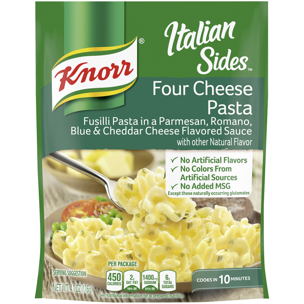 Italian Sides Four Cheese Fusilli Pasta 4.1 Oz "Package: 620 Calories, 18g Total Fat, 20mg Cholesterol, 1560mg Sodium, 93g Total Carbohydrate, 19g Protein" ![]() |