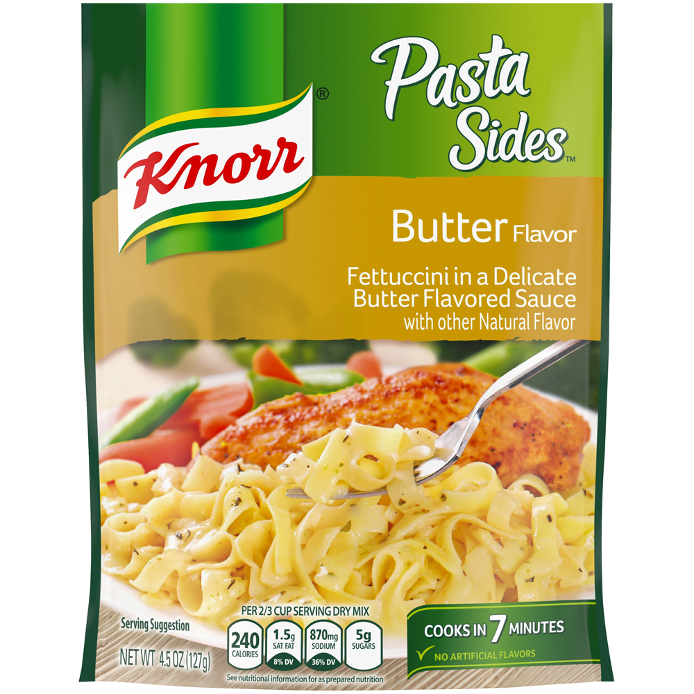 Pasta Sides Butter Flavor Fettuccini 4.5 Oz "Per 2/3 Cup: 270 Calories, 3.5g Total Fat, 5mg Cholesterol, 870mg Sodium, 44g Total Carbohydrate, 7g Protein" ![]() |