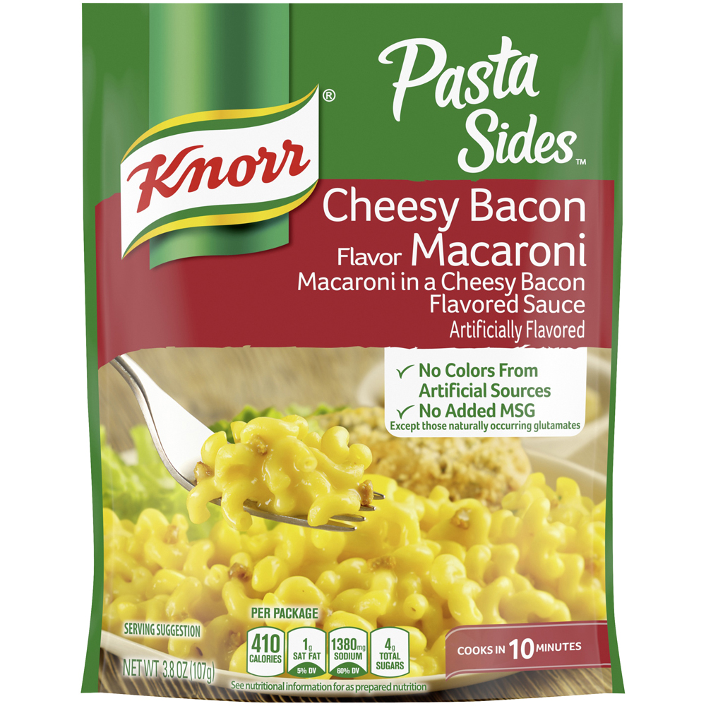 Pasta Sides Cheesy Bacon Macaroni In Sauce 3.8 Oz "Package: 570 Calories, 17g Total Fat, 15mg Cholesterol, 1540mg Sodium, 90g Total Carbohydrate, 17g Protein" ![]() |