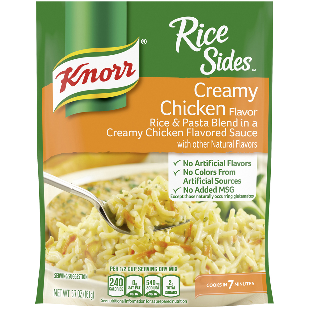Rice Sides Creamy Chicken In Sauce 5.7 Oz "Prepared: 280 Calories, 6g Total Fat, 0mg Cholesterol, 580mg Sodium, 49g Total Carbohydrate, 6g Protein" ![]() |