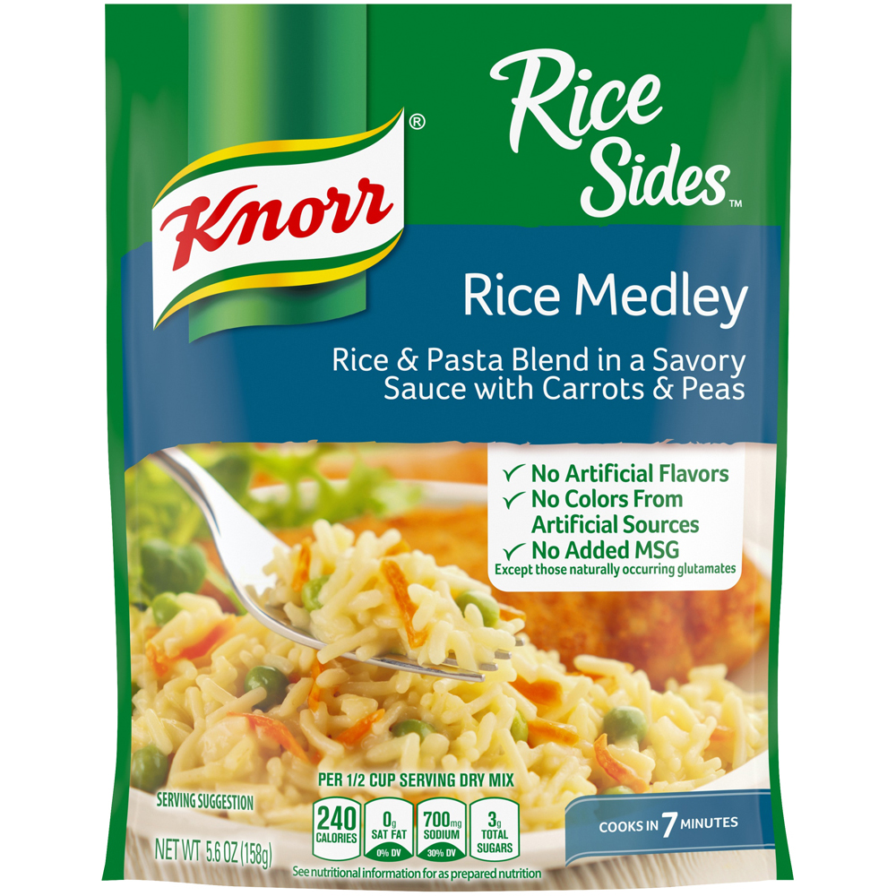 Rice Medley Savory Sauce W/Vegetables 5.6 Oz "Prepared: 280 Calories, 6g Total Fat, <5mg Cholesterol, 740mg Sodium, 47g Total Carbohydrate, 7g Protein" ![]() |