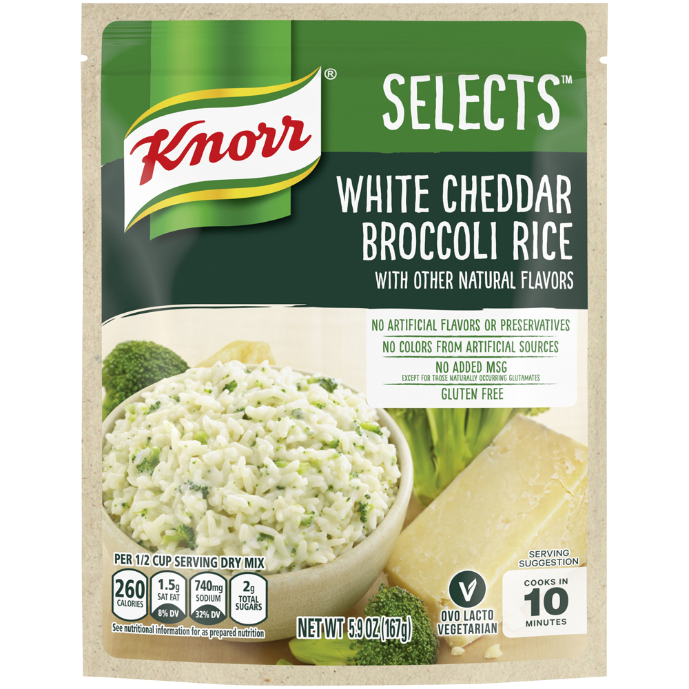 Selects White Cheddar Broccoli Rice 5.9 Oz "Prepared: 400 Calories, 16g Total Fat, 15mg Cholesterol, 790mg Sodium, 53g Total Carbohydrate, 11g Protein" ![]() |