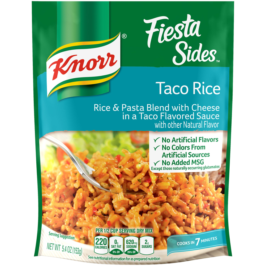 Fiesta Sides Taco Rice & Pasta Blend 5.4Oz "Prepared: 260 Calories, 5g Total Fat, 0mg Cholesterol, 660mg Sodium, 46g Total Carbohydrate, 6g Protein" ![]() |