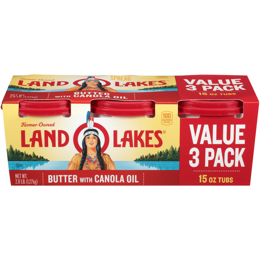 Butter With Canola Oil 3 Pack 15 Oz Each "Per One TBSP: 100 Calories, Total Fat 11g, Cholesterol 15mg, Sodium 85mg, Total Carb 0g" ![]() |