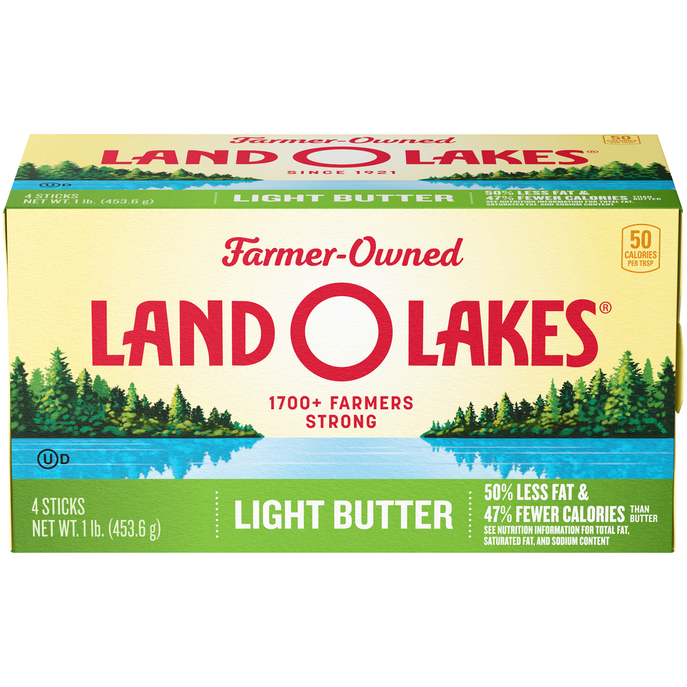 Light Land O Lakes Butter, 50 Percent Less Fat 4 Sticks 1 LB "Per One TBSP: 50 Calories, Total Fat 6g, Cholesterol 15mg, Sodium 95mg, Total Carb 0g, Protein 0g" ![]() |