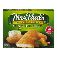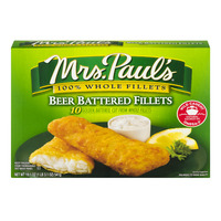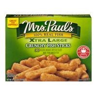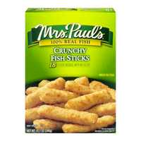 Mrs Pauls is a frozen seafood company that started small in 1946 with crab cakes in a Philadelphia bar by Edward Piszek and John Paul. Named after John Paul's mother, the company originally prided itself in putting itself above other seafood companies by only selling one hundred percent whole fillets and not minced fish sticks. Hey, it's a quality thing! But, times change and minced fish sticks are quick. People want quick!