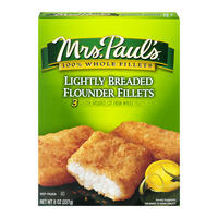 100 Percent Whole Lightly Breaded Flounder Fillets 3 Each 8 Oz "Per One Fillet: 150 Calories, 3.5g Saturated Fat, 25mg Cholesterol, 290mg Sodium, 8g Protein" ![]() |