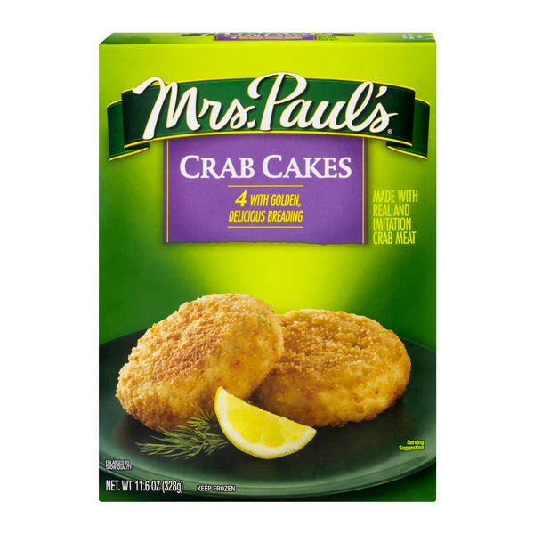 Crab Cakes Golden Breaded Real And Imitation Crab Meat 4 Each 11.6 Oz "Per One Cake: 120 Calories, 2g Saturated Fat, 25mg Cholesterol, 280mg Sodium, 7g Protein" ![]() |