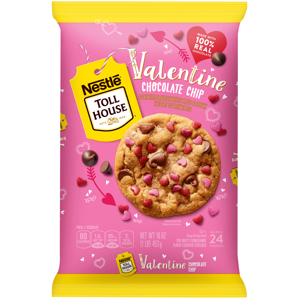 Valentine Chocolate Chip Cookie Dough, Makes 24 Each 16 Oz "Per One Cookie: 80 Calories, 1.5g Saturated Fat, 65mg Sodium, 7g Total Sugars" ![]() |