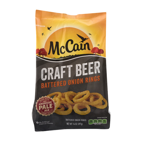 McCain Craft Beer Onion Rings 14 Oz "6 Pieces: 190 Calories, 8g Total Fat, 0mg Cholesterol, 350mg Sodium, 26g Total Carb, 2g Protein" ![]() |